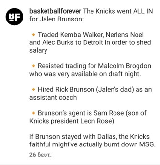 Οι Knicks έκαναν τα πάντα για να μπορέσουν να κάνουν δικό τους τον Jaylen Brunson. Και όταν λέμε τα πάντα, το εννοούμε: