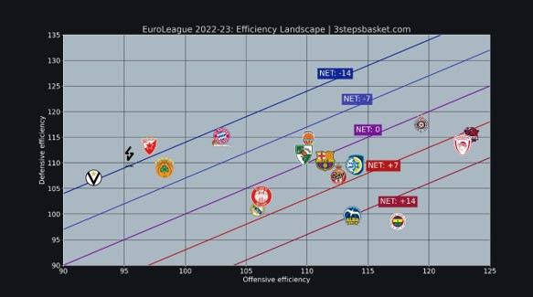 Η ταυτότητα των δύο ομάδων έχει ως βάση της την εξαιρετική επιθετική λειτουργία με τον Ολυμπιακό να βρίσκεται πρώτος σε Offensive Rating σε όλη τη λίγκα με 128.5 πόντους ανά 100 κατοχές, ενώ κοντά του βρίσκεται στην 4η θέση και η Φενέρ με 121.4 πόντους ανά 100 κατοχές. Η ομάδα του Ιτούδη βρίσκεται με διαφορά πρώτη σε Net Rating με 18.8, ενώ ο Ολυμπιακός είναι 3ος στην κατηγορία με 10.2 πληγωμένος από την άμυνά του που προς το παρόν δε βρίσκεται στην αποτελεσματικότερή της περίοδο.