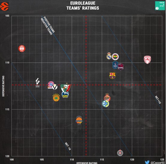 Στο παρακάτω γράφημα του HackAStat βλέπουμε ότι η επίθεση του ΠΑΟ είναι από τις μέτριες στην Ευρωλίγκα.