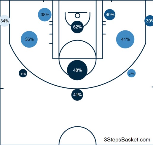 Όπως έχουμε αναλύσει ξανά και ξανά, ο Ολυμπιακός φέτος παρουσιάζει μια ιστορικά καλή επίθεση από άποψη execution και αποτελεσματικότητας. Μέσα σε μια σεζόν που βλέπουμε μια τέτοιου επιπέδου επίθεση, η Παρτιζάν καταφέρνει να είναι η #1 επίθεση της λίγκας, πράγμα που λέει πολλά πράγματα για το επίπεδο της. Ο Ζέλικο Ομπράντοβιτς, έχοντας ακολουθήσει την παγκόσμια τάση του αθλήματος, έχει δώσει το κουμάντο της ομάδας σε έναν παίκτη που δεν είναι καθαρόαιμος άσσος και βασίζεται στο ρυθμό που αυτός μπορεί να δώσει. Ο λόγος φυσικά για τον Dante Exum, έναν εκ των πιο versatile παικτών στη λίγκα, που στην άμυνα μπορεί να μαρκάρει τους πάντες, ενώ στην επίθεση ανεβάζει το τέμπο, επιτίθεται ασταμάτητα προς τη ρακέτα, ανοίγοντας χώρο για την υπόλοιπη επίθεση. Το high pick and roll με τον Exum ως ball-handler και τον Lessort ως screener είναι η δομή πάνω στην οποία η Παρτιζάν χτίζει την επίθεσή της, πλαισιώνοντας το με ικανότατους σουτέρ όπως ο Punter και ο Nunnaly. Το Shot Chart της Παρτιζάν για τη φετινή σεζόν θυμίζει πολύ περισσότερο analytics-driven επίθεση του ΝΒΑ, παρά παραδοσιακή ομάδα της Ευρωλίγκας, με μια σημαντική διαφορά: τα τρίποντα από τη γωνία, που ούτως ή άλλως έχουμε αναλύσει σε προηγούμενο μας άρθρο ότι μαρκάρονται εύκολα στην Ευρωλίγκα, έχουν αντικατασταθεί με το midrange παιχνίδι στη περιοχή των βολών: όταν έχεις παίκτες σαν τον Punter, τον Exum κ.α. και μπορείς να σουτάρεις με 48% (!) σε τόσο μεγάλο volume τότε όχι απλά μπορείς να ζήσεις με αυτό, αλλά αντίθετα μπορείς να χτίσεις πάνω σε αυτό. Η Παρτιζάν φτάνει με χαρακτηριστική ευκολία σε αυτά τα σουτ και σκοράρει σε ένα εξαιρετικό ποσοστό. Αποτέλεσμα αυτής της στρατηγικής είναι το 63% σε True Shooting που είναι φυσικά στις κορυφαίες επιδόσεις. Μπορεί λοιπόν η Παρτιζάν να είναι 6η στη κατάταξη, ωστόσο επιθετικά ανήκει στην ελίτ της Ευρωλίγκας και αν καταφέρει να σε βάλει στον ρυθμό της, τότε έρχεται ένα δύσκολο βράδυ.