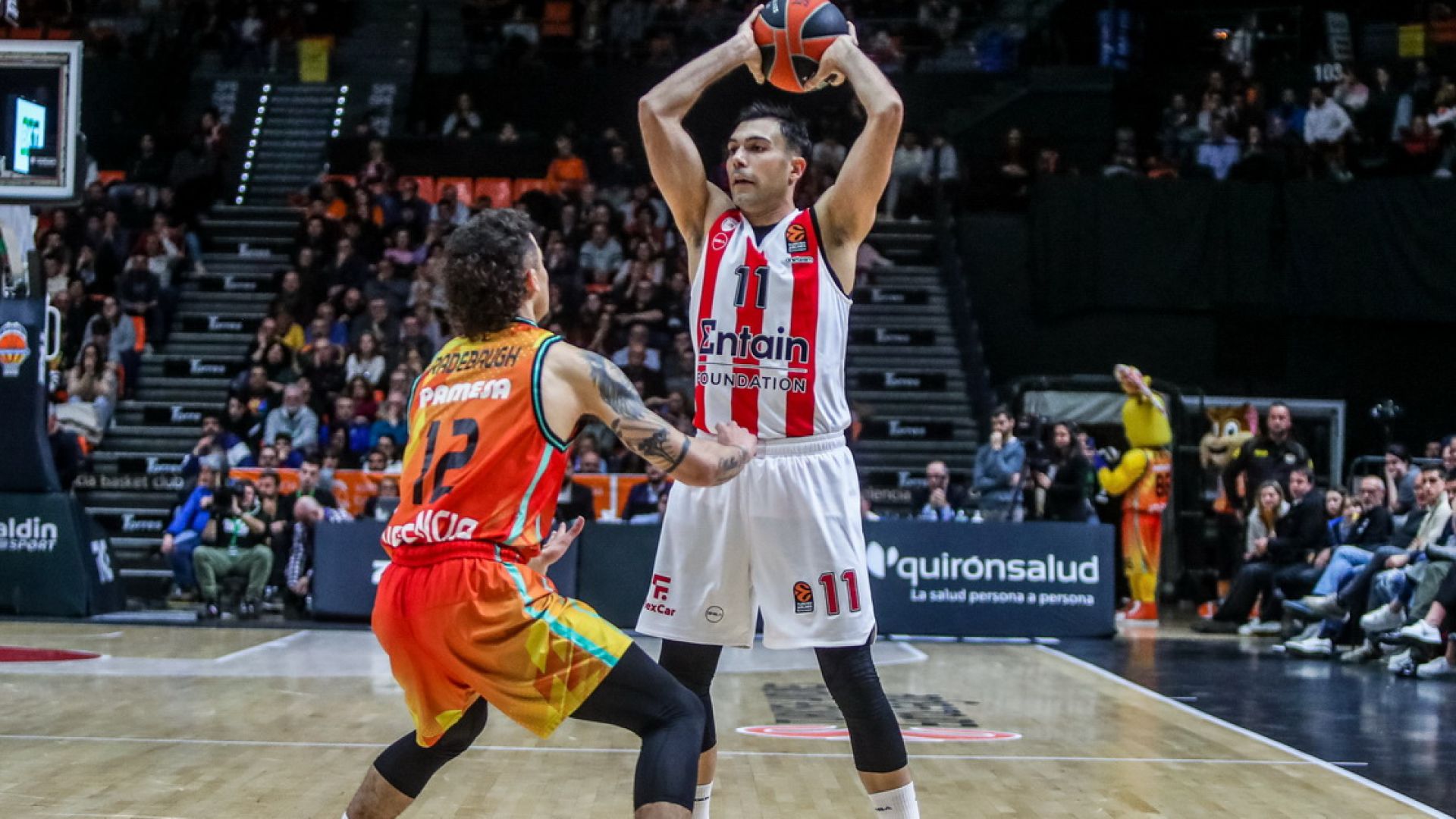 Στην αντίπερα όχθη ο γρήγορος αποκλεισμός πρόσφερε στη Βαλένθια ένα ωραιότατο τριήμερο ξεκούρασης και αποκατάστασης ενόψει της δύσκολης συνέχειας που συμπεριλαμβάνει τη μεγάλη πρόκληση της πρόκρισης στα πλέι οφ της Euroleague και κατά συνέπεια την εξασφάλιση της συμμετοχή της σε αυτή για ακόμα ένα χρόνο. Τα αποτελέσματα της Πέμπτης, δε, της πρόσφεραν μια χρυσή ευκαιρία να βρεθεί μόνη στην έκτη θέση της κατάταξης, γεγονός που έγινε αντιληπτο τόσο από το κοινό της που γέμισε τις εξέδρες, όσο και από τους παίκτες της που βγήκαν στο παρκέ με το μαχαίρι στα δόντια.