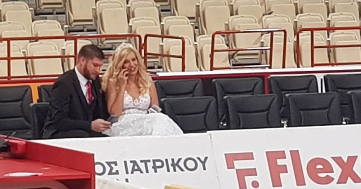 Ολυμπιακός - Φενέρ: Ζευγάρι πήγε στο ΣΕΦ με νυφικό και γαμπριάτικο κοστούμι (pic)