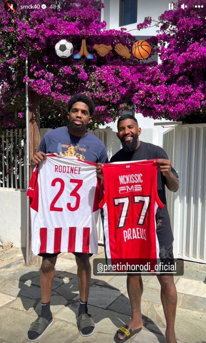 Τον ποδοσφαιρικό με τον μπασκετικό Ολυμπιακό ένωσαν οι Σακίλ Μακίσικ και ο Ροντινέι, με τους δυο αθλητές να συναντώνται και να ανταλλάσσουν φανέλες.