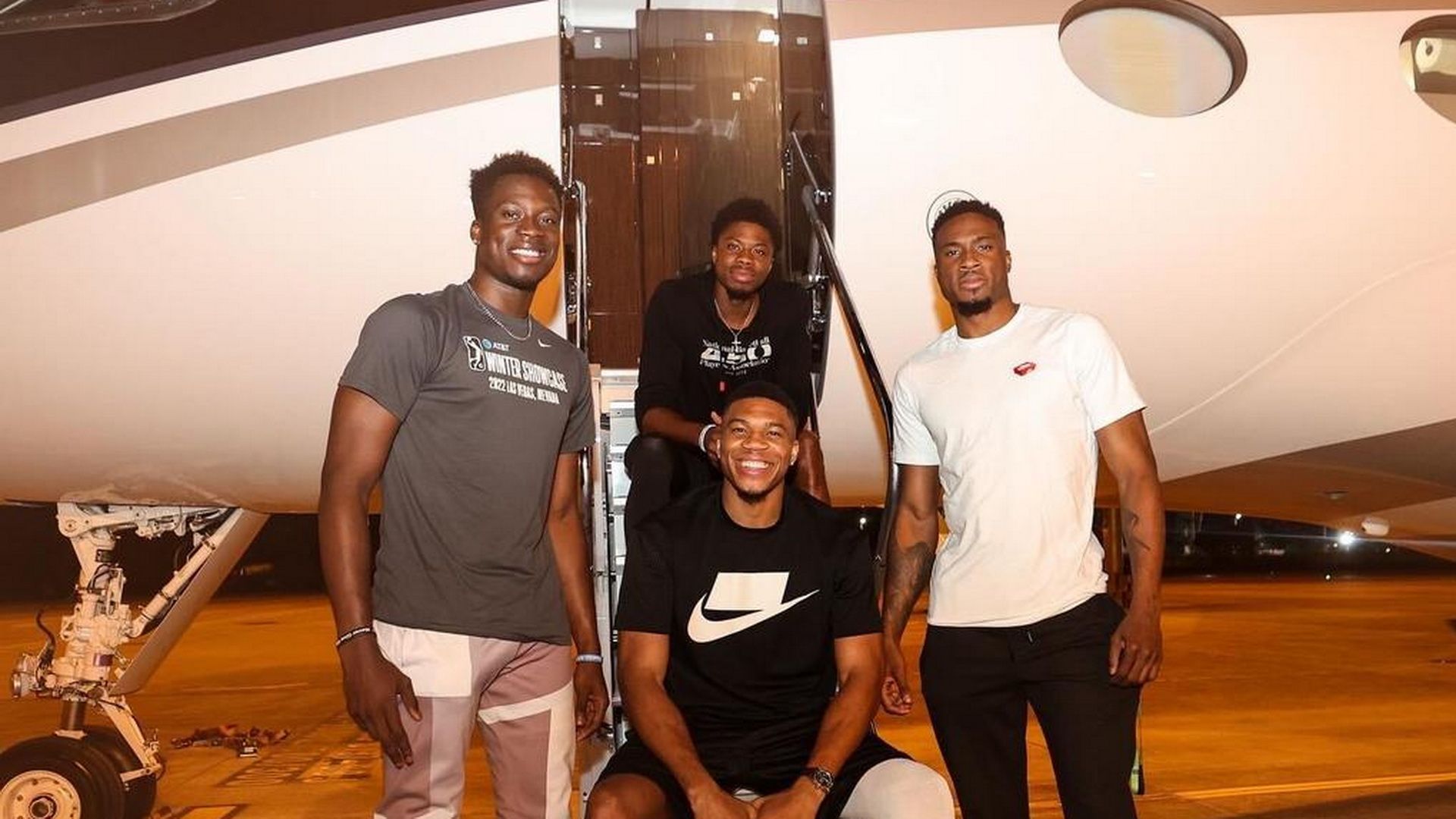 Γιάννης, Θανάσης, Κώστας και Άλεξ πήραν το αεροπλάνο και πραγματοποίησαν το μακρινό ταξίδι, με τον «Greek Freak» να μην κρύβει τον ενθουσιασμό του.