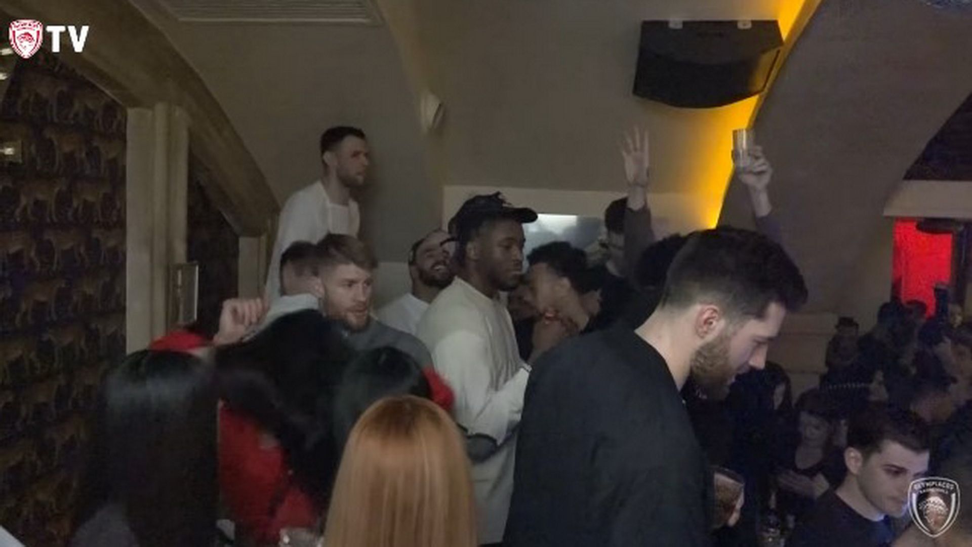 Οι παίκτες του Γιώργου Μπαρτζώκα απόλαυσαν το πούρο της νίκης, με τον προπονητή του Ολυμπιακού να τσουγκρίζει το ποτήρι του με τους αδελφούς Αγγελόπουλους και τον Γιώργο Σκινδήλια, τον Κώστα Παπανικολάου να δίνει το σύνθημα για την… προσωπική του αποθέωση και τον Μόουζες Ράιτ να λικνίζεται υπό τους ήχους της μουσικής.