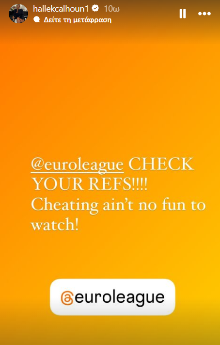 Η Χέιλ Καλχούν, με ανάρτηση της στα social media... ξεσπαθώνει κατά των διαιτητών του 5ου αγώνα της Μακάμπι με τον Παναθηναϊκό, καλώντας την Euroleague να λάβει μέτρα.