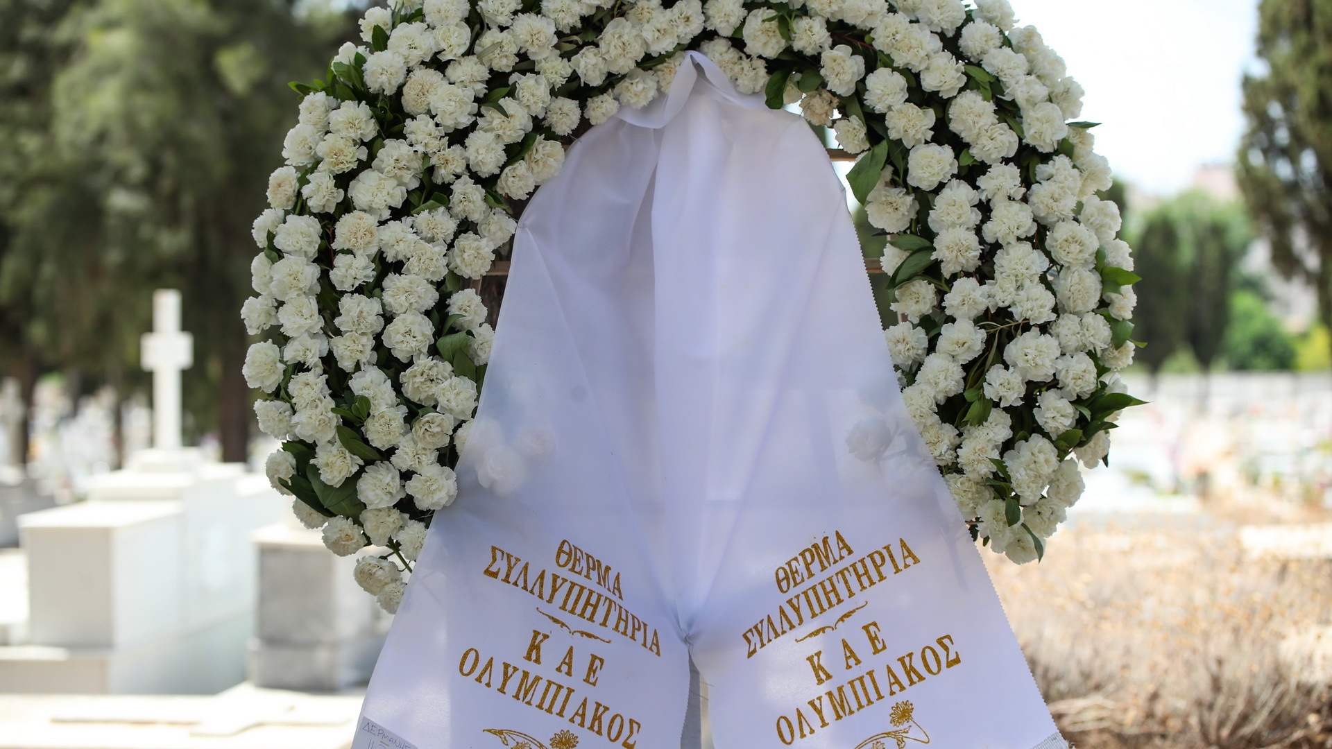 Παράλληλα, πολλά ήταν και τα στεφάνια, ανάμεσα τους αυτά των ΚΑΕ Παναθηναϊκού, Ολυμπιακού και ΑΕΚ, καθώς και του Δημήτρη Γιαννακόπουλου.