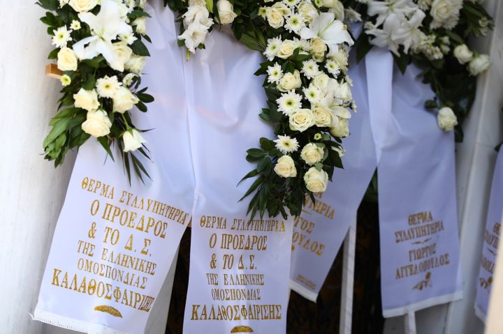 Το πρωί του Σαββάτου (2/11) πραγματοποιήθηκε η κηδεία του εμβληματικού παράγοντα και το παρών έδωσαν, μεταξύ άλλων, τόσο οι διοικητικοί ηγέτες του Ολυμπιακού, Παναγιώτης και Γιώργος Αγγελόπουλος, όσο και ο προπονητής του Παναθηναϊκού, Εργκίν Αταμάν, αλλά και πολλοί άνθρωποι, τόσο του ελληνικού, όσο και του ευρωπαϊκού μπάσκετ, όπως ο ισχυρός άνδρας της Euroleague, Ντέγιαν Μποντιρόγκα.
