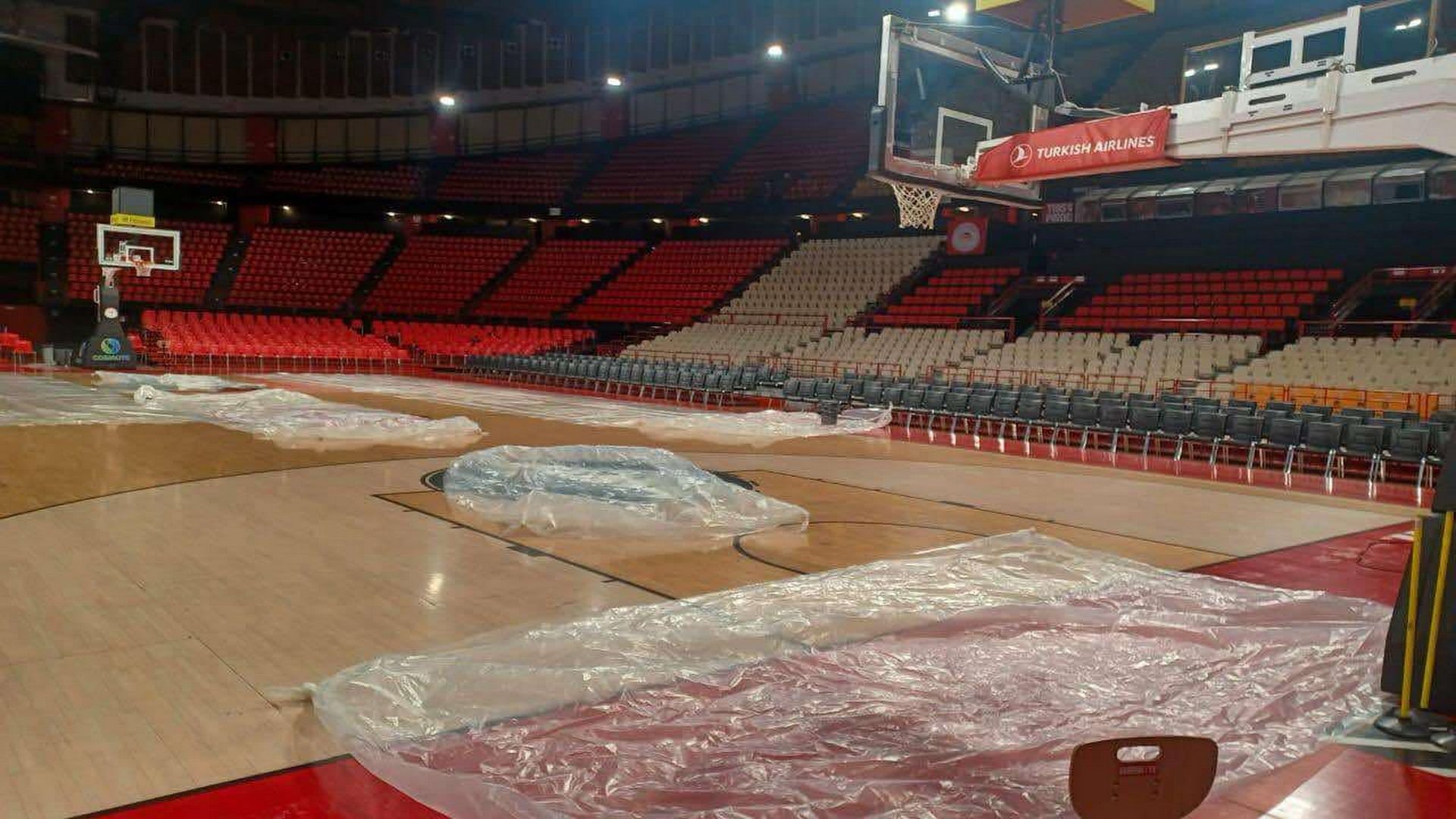 Οι ιθύνοντες του Ολυμπιακού έσπευσαν, με κουβάδες και μουσαμάδες να προστατέψουν, όσο είναι αυτό δυνατόν, το παρκέ του γηπέδου, ώστε να μην υπάρχει πρόβλημα ενόψει των επερχόμενων εντός έδρας υποχρεώσεων της ομάδας, με τους «ερυθρόλευκους» και συνολικά το ελληνικό μπάσκετ, να στέκονται για ακόμα μία φορά τυχεροί, καθώς δεν έχουν κάποια εντός έδρας υποχρέωση για την Euroleague, γλιτώνοντας την διεθνή δυσφήμηση.