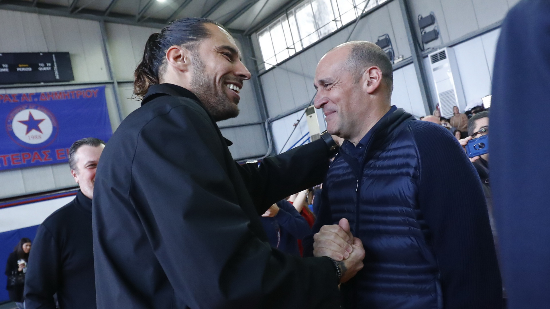 Ο Δήμος του Αγ. Δημητρίου τιμά τον Γιώργο Πρίντεζη, δίνοντας το όνομα του στο κλειστό της πόλης και οι Παναγιώτης και Γιώργος Αγγελόπουλος δεν θα μπορούσαν να απουσιάσουν από την ξεχωριστή αυτή στιγμή, του πρώην αρχηγού του Ολυμπιακού.