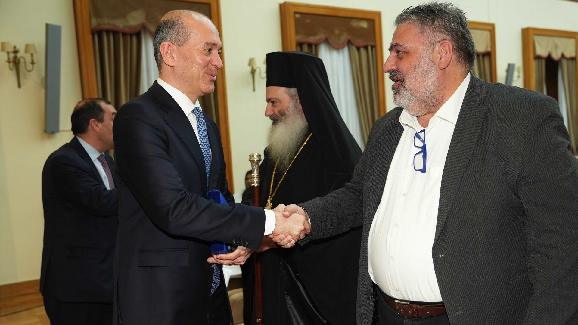 Τις πλακέτες στους Παναγιώτη και Γιώργο Αγγελόπουλο απένειμε ο Επικεφαλής της Πρωτοβουλίας, Καθηγητής κ. Παναγιώτης Μπεχράκης, αναγνωρίζοντας δημόσια, με αυτόν τον τρόπο τη σταθερή τους στάση και τη συνεχή στήριξή τους στον αγώνα για μια Ελλάδα απαλλαγμένη από το κάπνισμα.