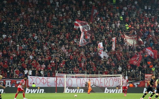 Μάλιστα οι οπαδοί των ερυθρόλευκων κρέμασαν πανό στις κερκίδες του γηπέδου, στο οποίο αναγραφόταν: «Σοφέ καλό παράδεισο».