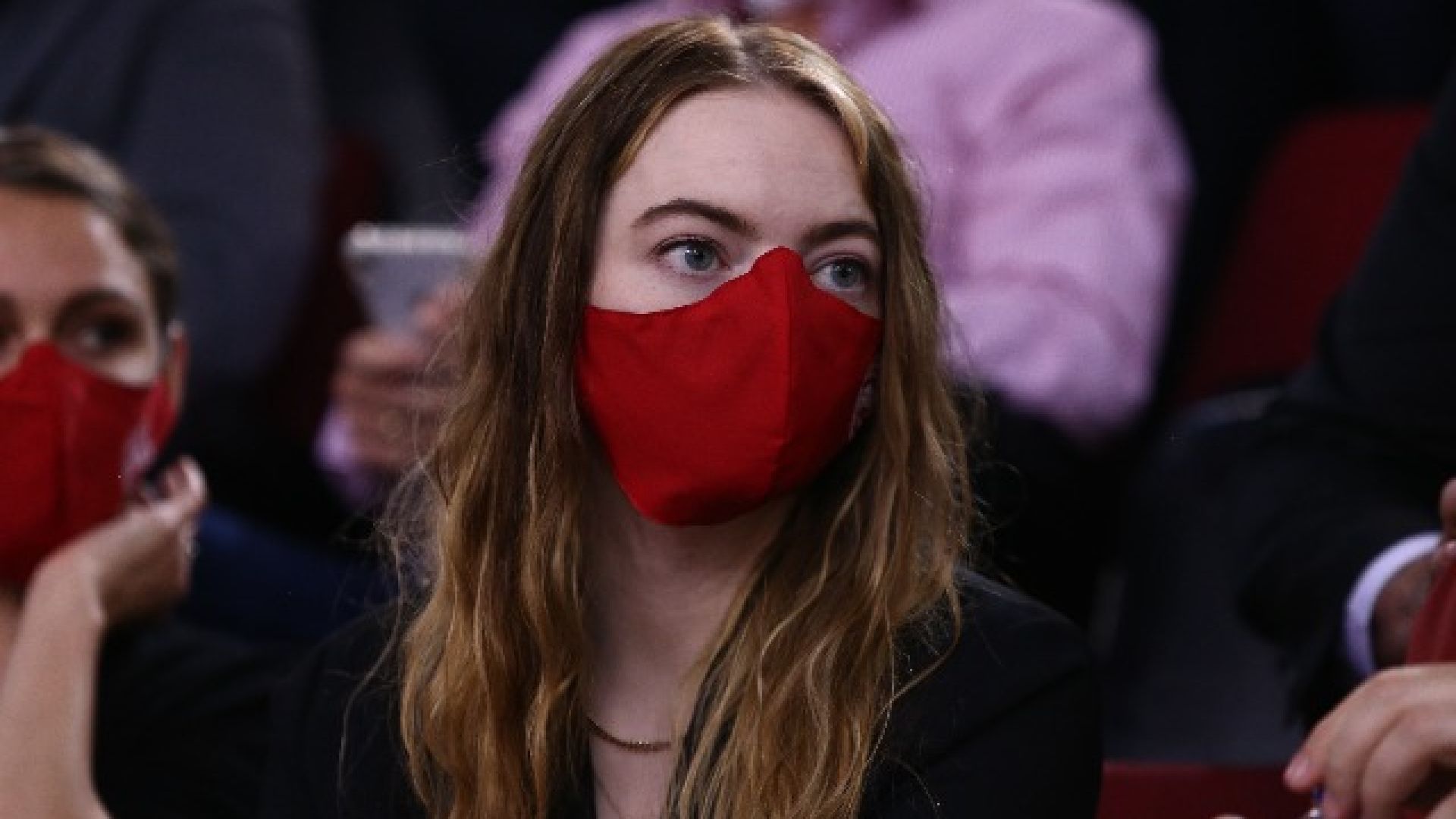 Η κάμερα της EuroLeague έπιασε την χολιγουντιανή σταρ, Έμα Στόουν να πανηγυρίζει ένα καλάθι του Τόμας Γουόκαπ για τον Ολυμπιακό στα μισά της τρίτης περιόδου.