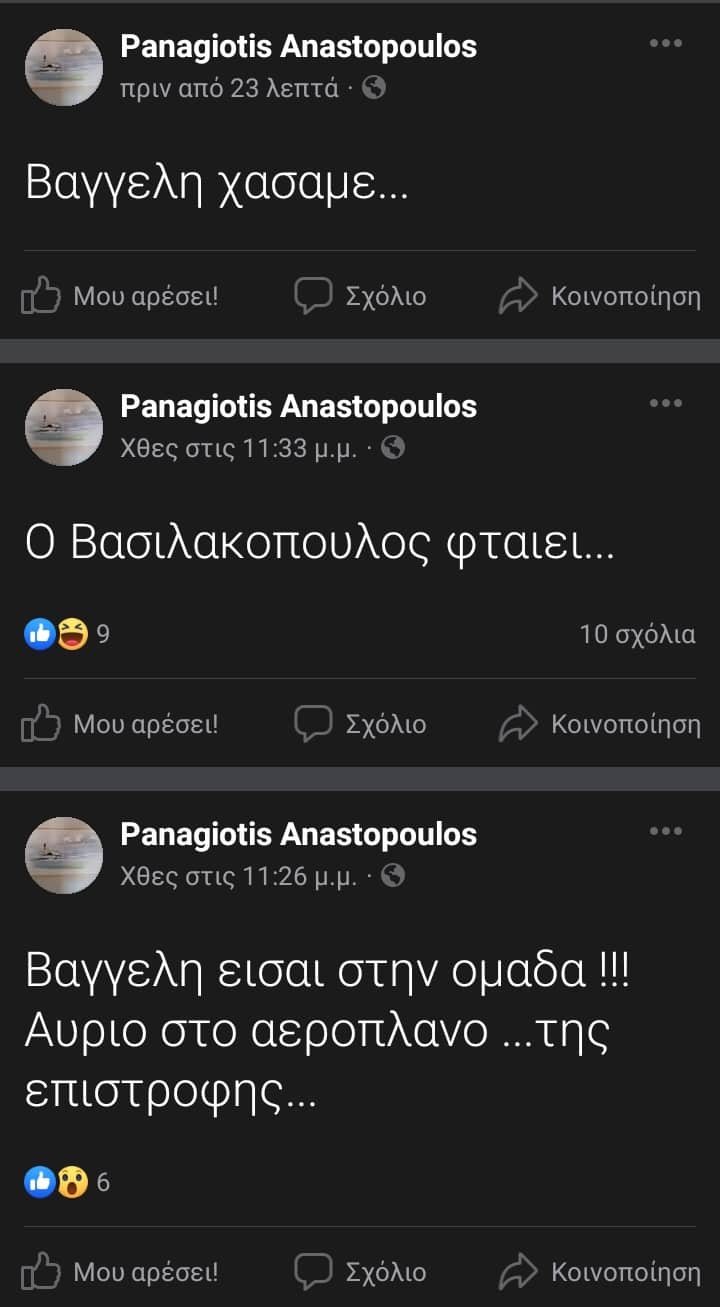 Κάτι που προκάλεσε πάντως πολλές αντιδράσεις στα σχόλια των διαδικτυακών του φίλων και μάλιστα μία από τις αναρτήσεις τις διέγραψε.
