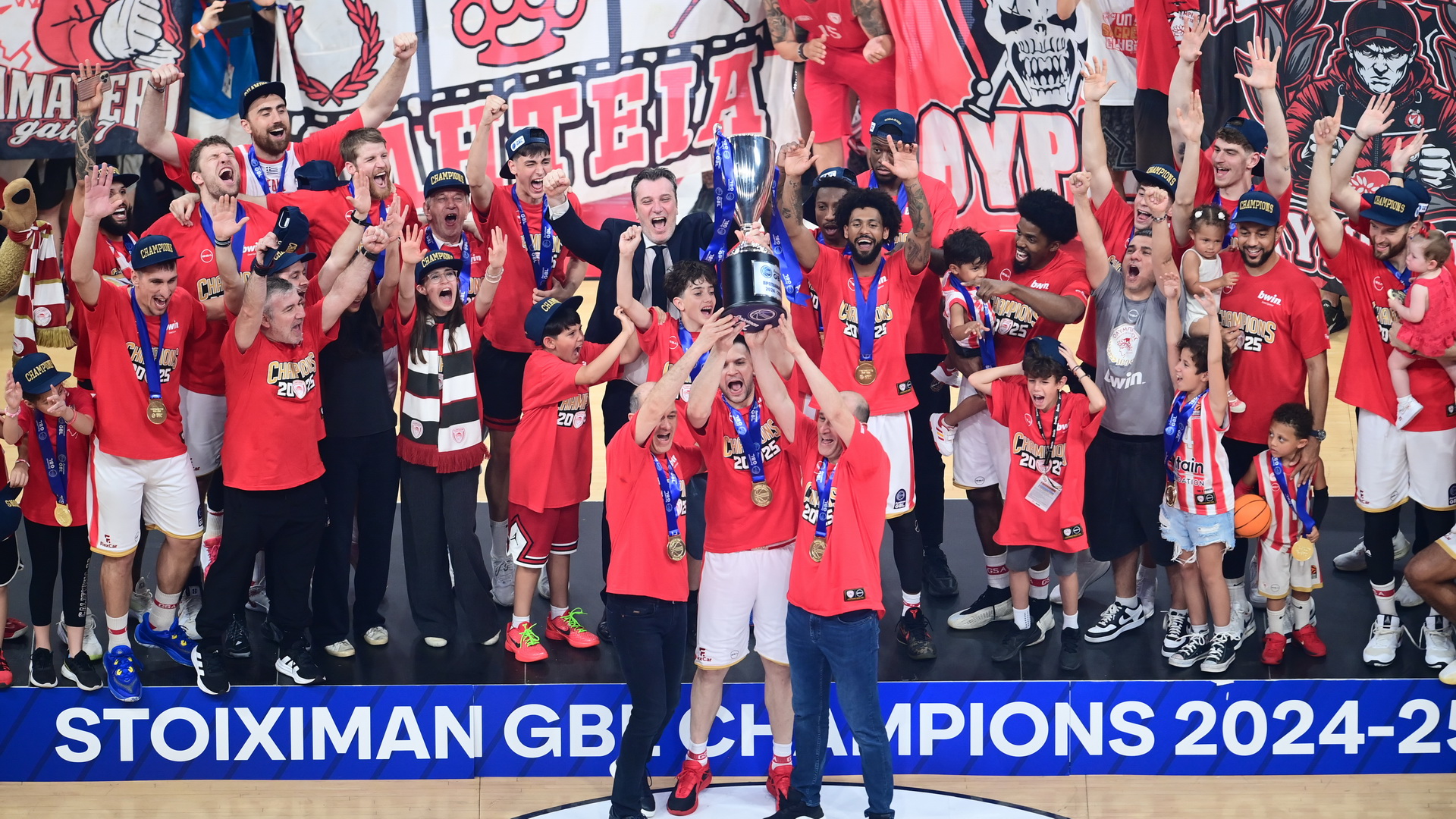 Ο Ολυμπιακός έφτασε πανάξια στην κατάκτηση του πρωταθλήματος και ο Κώστας Παπανικολάου ύψωσε ψηλά στον ουρανό του ΣΕΦ, το βαρύτιμο τρόπαιο.