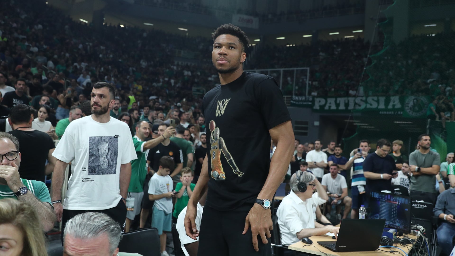 Ο Γιάννης Αντετοκούνμπο έδωσε το παρών στο ΟΑΚΑ για να παρακολουθήσει τον πέμπτο τελικό της ανάμεσα σε Παναθηναϊκό και Ολυμπιακό. Mαζί του ήταν και ο αδερφός του Άλεξ.