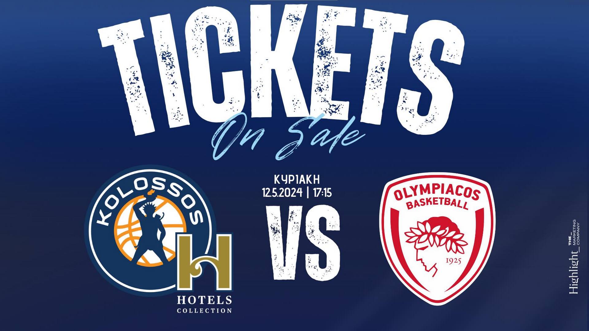 Ο Κολοσσός θα υποδεχθεί τον Ολυμπιακό στη Ρόδο για την 5η αγωνιστική του top - 6 της Basket League και τα εισιτήρια του εν λόγω αγώνα τίθενται στη διάθεση του κοινού.