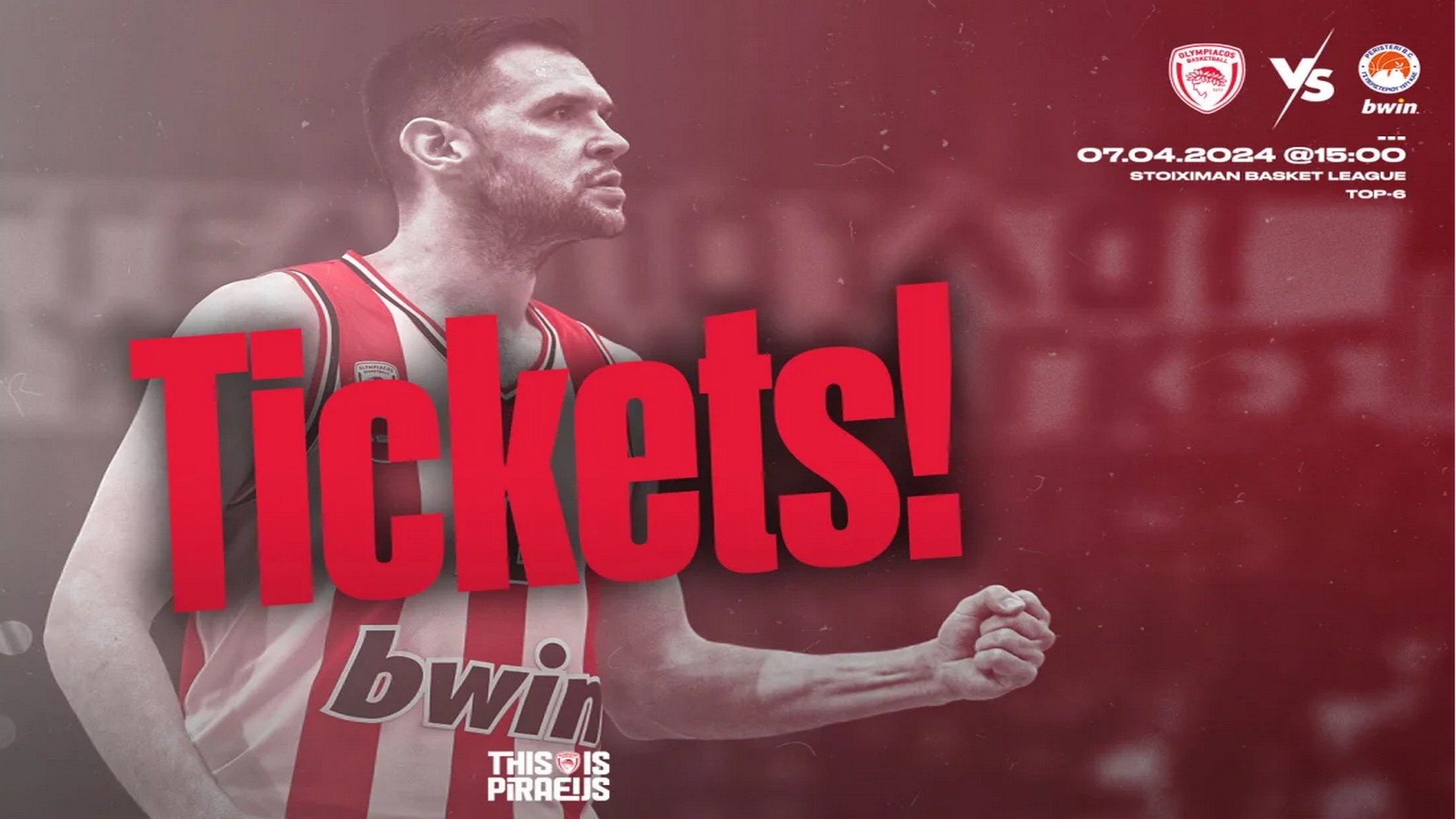 Ο Ολυμπιακ΄ος θα αντιμετωπίσει για την 2η αγωνιστική του γ' γύρου το Περιστέρι την Κυριακή (7/4,15:00) με την ερυθρόλευκη ΚΑΕ να ενημερώνει τους φιλάθλους της ομάδας για τους τρόπους και τόπους διάθεσης των εισιτηρίων για τον αγώνα της Κυριακής.