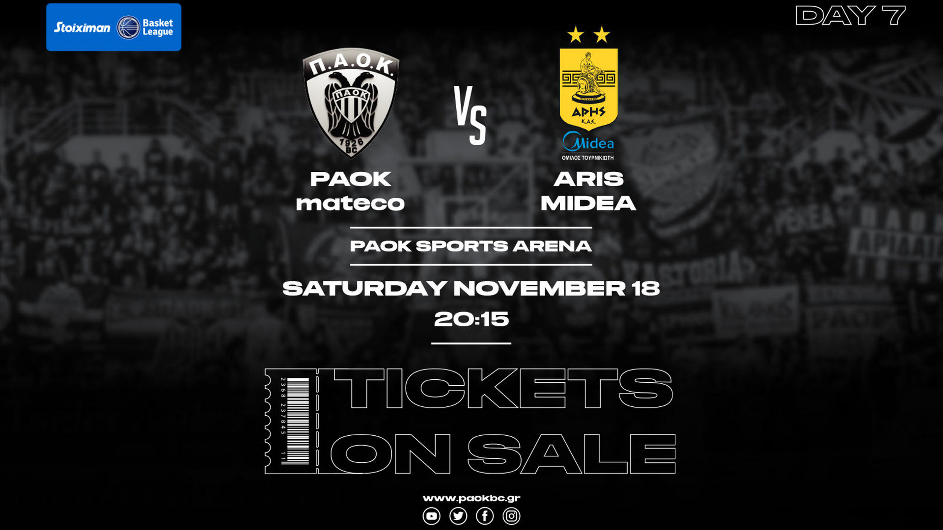 Σε κυκλοφορία τέθηκαν τα εισιτήρια του ντέρμπι μεταξύ ΠΑΟΚ και Άρη που θα γίνει το κλειστό της Πυλαίας στις 18/11, με το παιχνίδι να διεξάγεται στο πλαίσιο της 6ης αγωνιστικής της Basket League.
