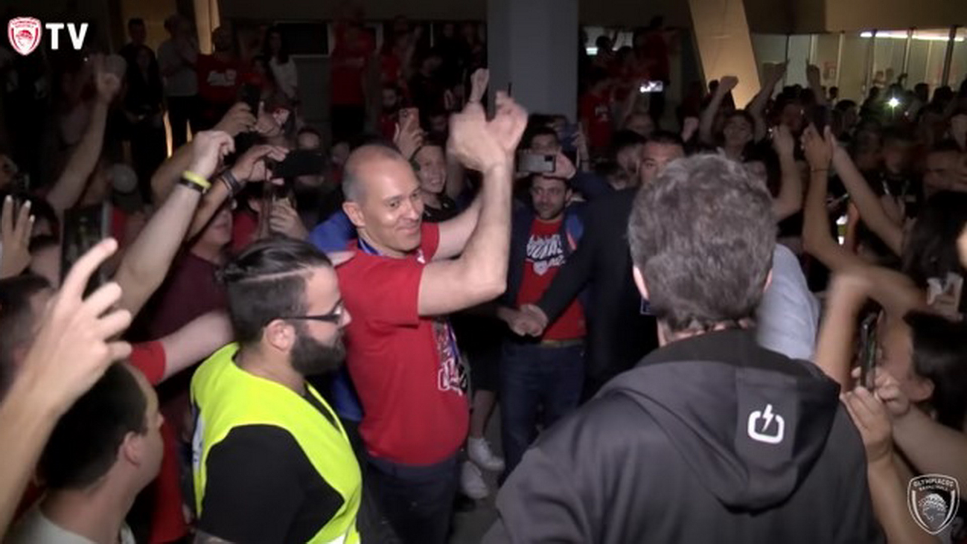 Ο πρόεδρος του Ολυμπιακού Γιώργος Αγγελόπουλος, αλλά και οι παίκτες των «ερυθρόλευκων» έγιναν αντικείμενα λατρείας από τον κόσμο, κατά την αποχώρηση τους από το ΣΕΦ, μετά το φινάλε της φιέστας κατάκτησης του τίτλου.