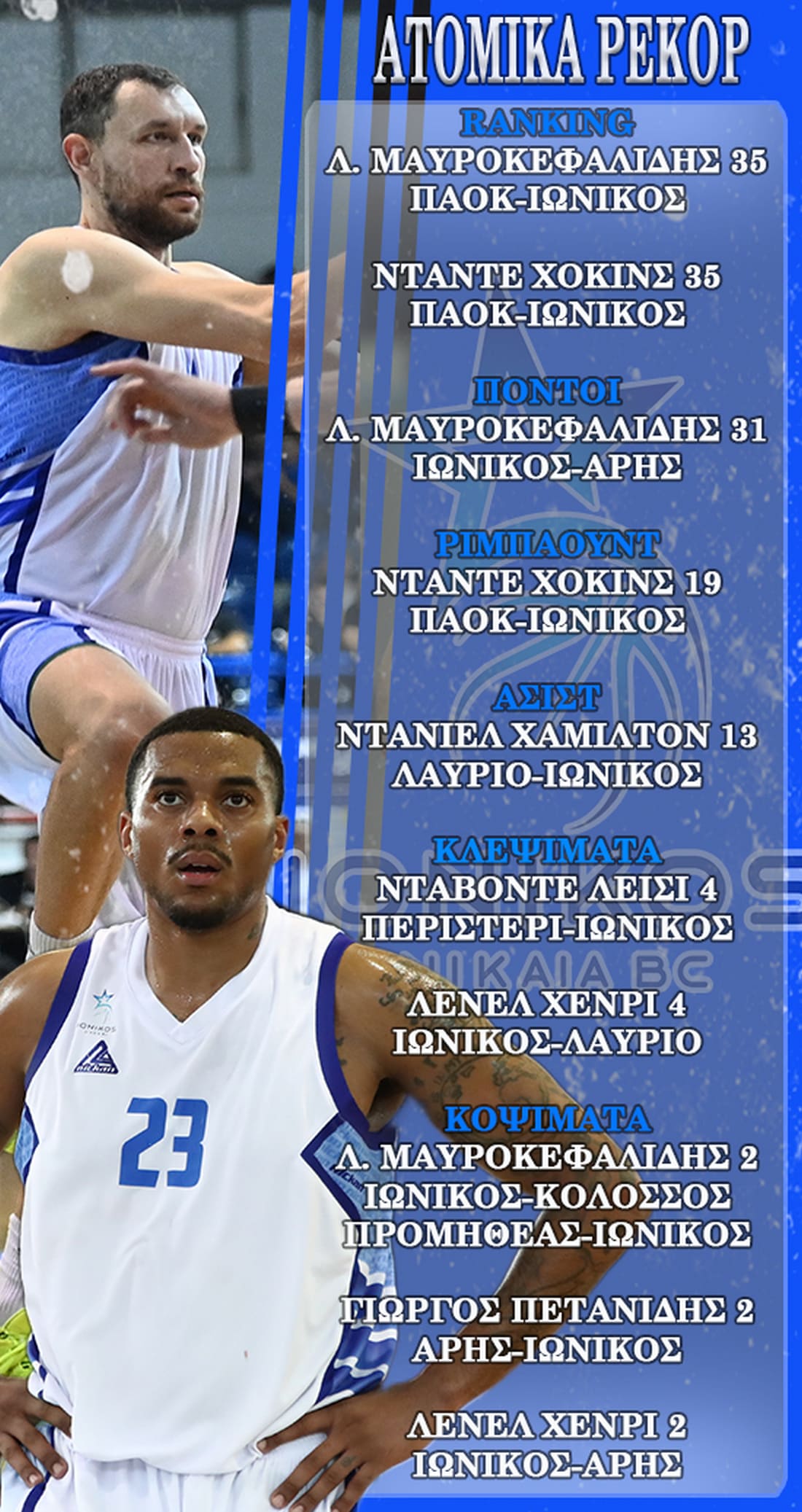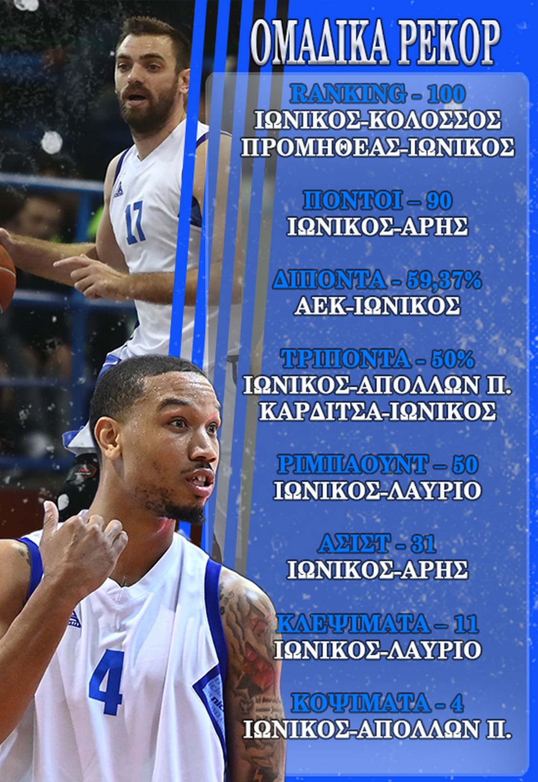 ΤΑ ΡΕΚΟΡ: Οι 22 αγώνες του στη Basket League άφησαν για τον Ιωνικό κάποιες ξεχωριστές επιδόσεις μιας βραδιάς, σε ατομικό και ομαδικό επίπεδο.