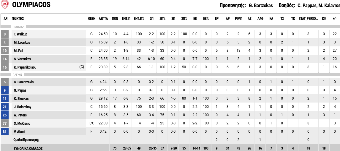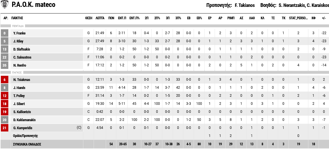 Ξεχώρισαν: Ο Σλούκας τελείωσε το παιχνίδι με 17 πόντους, ενώ για τον ΠΑΟΚ, ο Σάιμπερτ είχε 14 πόντους.