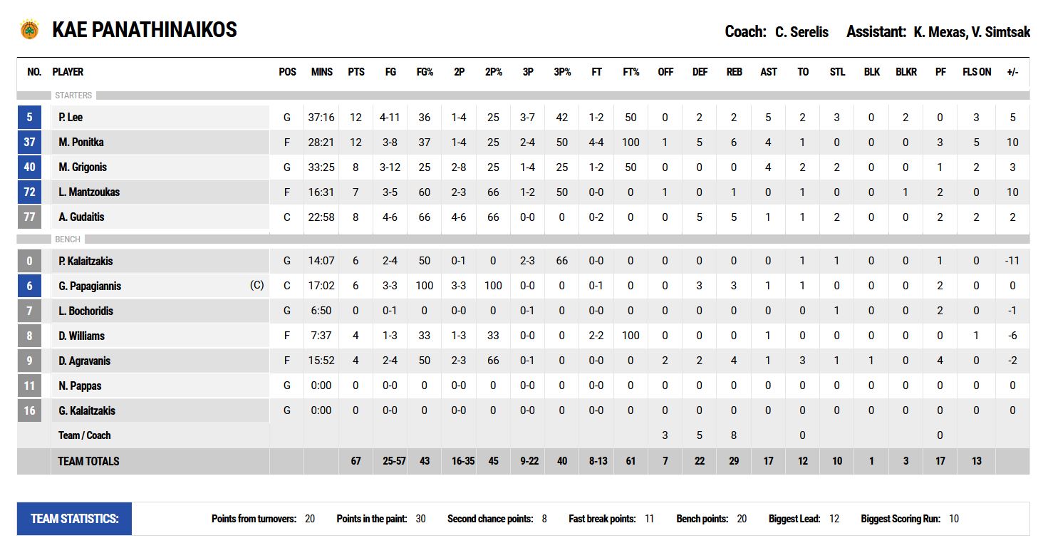 Η μεγαλύτερη διαφορά: +12 (25-13, 10’) για τον Παναθηναϊκό, +5 (33-38, 21'20'') για τον Ολυμπιακό