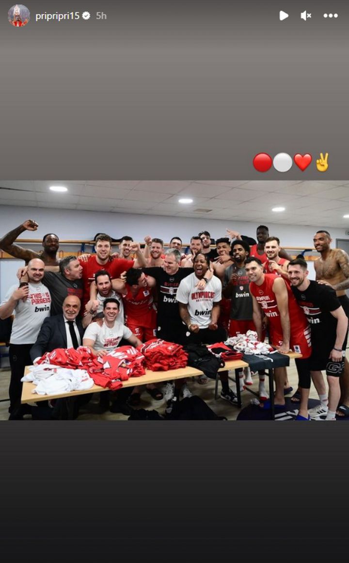 Ο λόγος για τον Γιώργο Πρίντεζη, ο οποίος ανέβασε στα social media μία πανηγυρική φωτογραφία των «ερυθρόλευκων», από τα αποδυτήρια του ΟΑΚΑ.