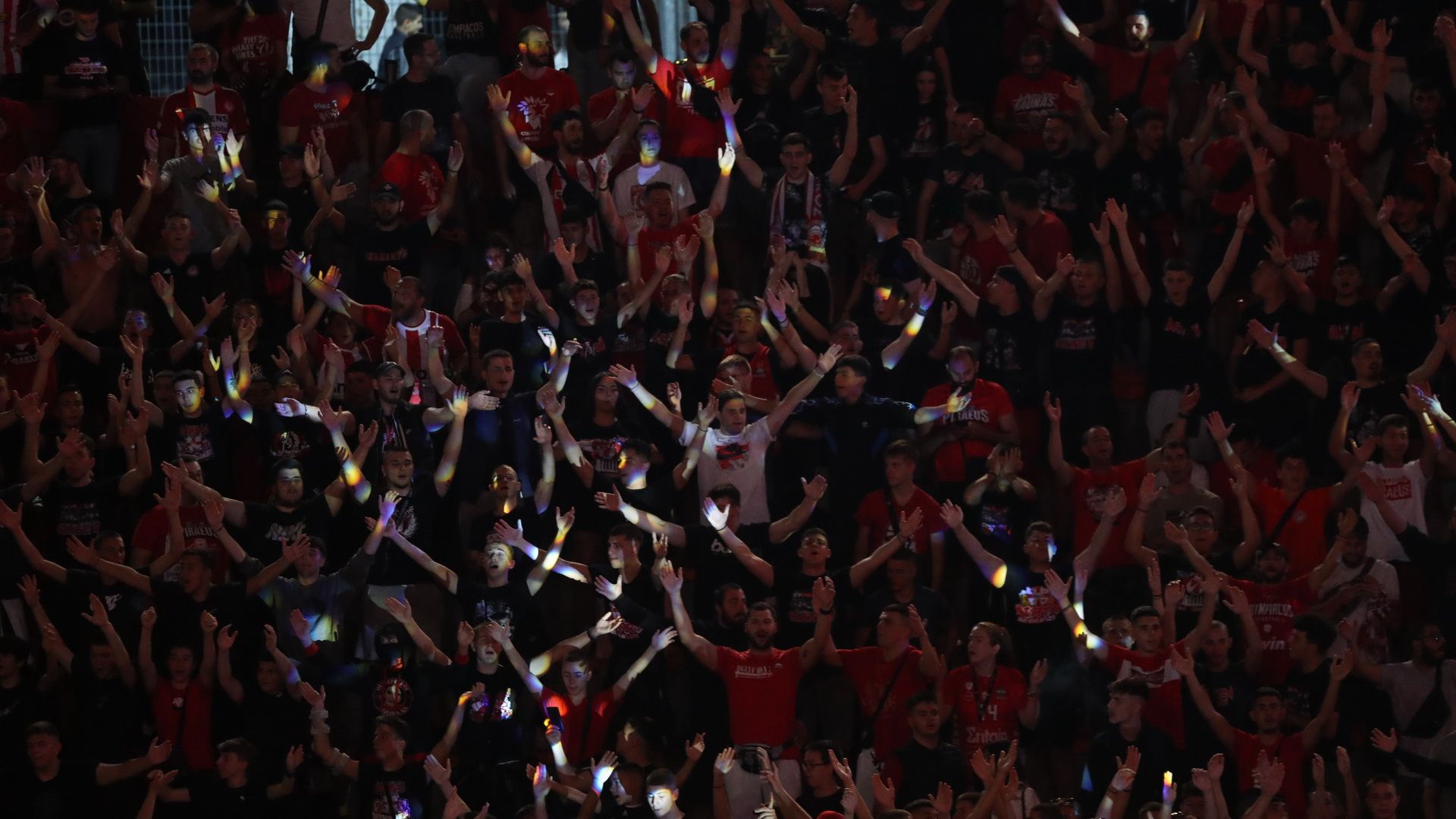Τα φώτα έπεσαν και η φιέστα κατάκτησης του πρωταθλήματος Ελλάδας από τον Ολυμπιακό, ξεκίνησε με τρόπο φαντασμαγορικό.