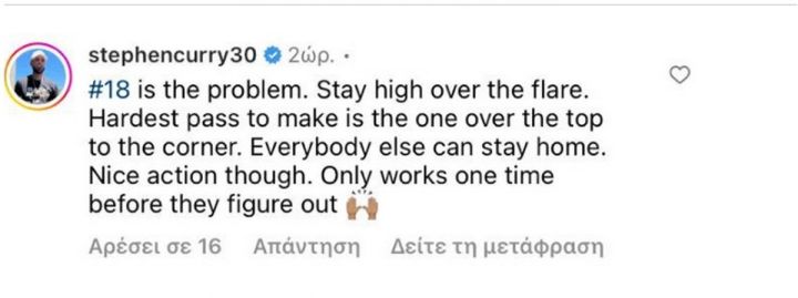 Ο Στέφ Κάρι είδε στο διαδίκτυο ένα play που έπαιξε το Περισ΄τερι του Βασίλη Σπανούλη κόντρα στον ΠΑΟΚ, με τον Αμερικανό σταρ να σχολιάζει θετικά τον τρόπο παιχνιδιού της αθηναϊκής ομάδας.