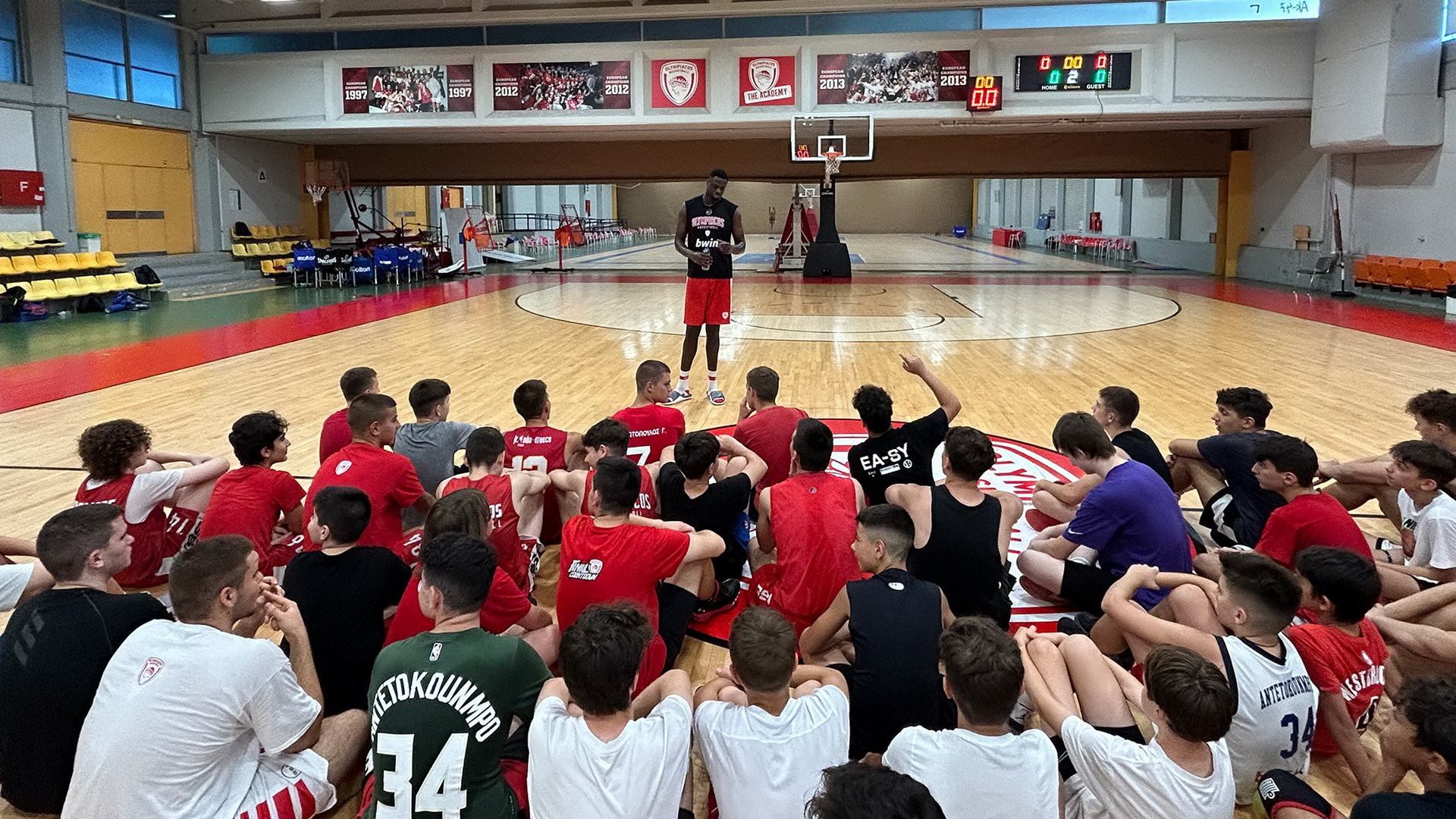 Εκτός από τις προπονήσεις, συνεχίζονται και οι εκπλήξεις προς τους μικρούς αθλητές που συμμετέχουν στο Advanced Basketball & Athletics camp του Ολυμπιακού, που πραγματοποιείται για δεύτερη εβδομάδα στις εγκαταστάσεις του ΣΕΦ,