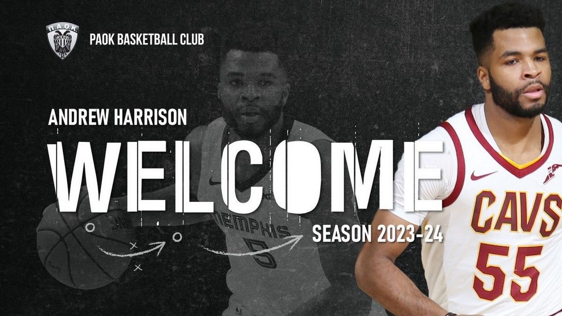 "Η ΚΑΕ ΠΑΟΚ mateco ανακοινώνει τη συμφωνία με τον Αμερικανό γκαρντ Andrew Harrison, ο οποίος θα αγωνιστεί στην ομάδα μας τη σεζόν 2023-24. Καλωσορίζουμε στη μεγάλη οικογένεια του ΠΑΟΚ, ένα σπουδαίο αθλητή με σημαντική παρουσία και στο ΝΒΑ!