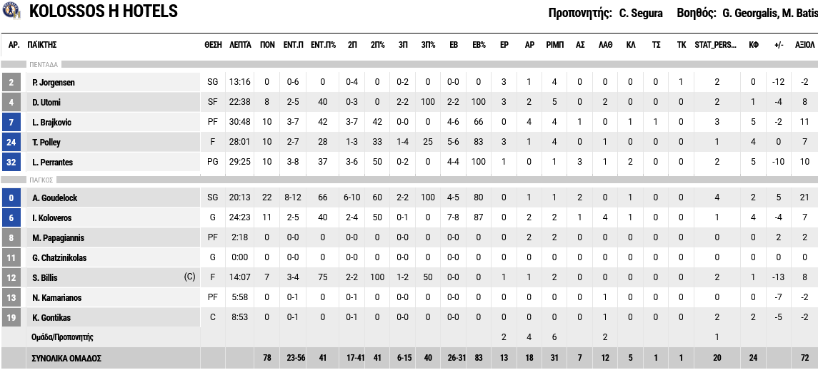 Ξεχώρισαν: 19 πόντους είχε ο Γκάλινατ, ενώ για τον Κολοσσό, ο Γκάουτλοκ είχε 22 πόντους στο ντεμπούτο του.