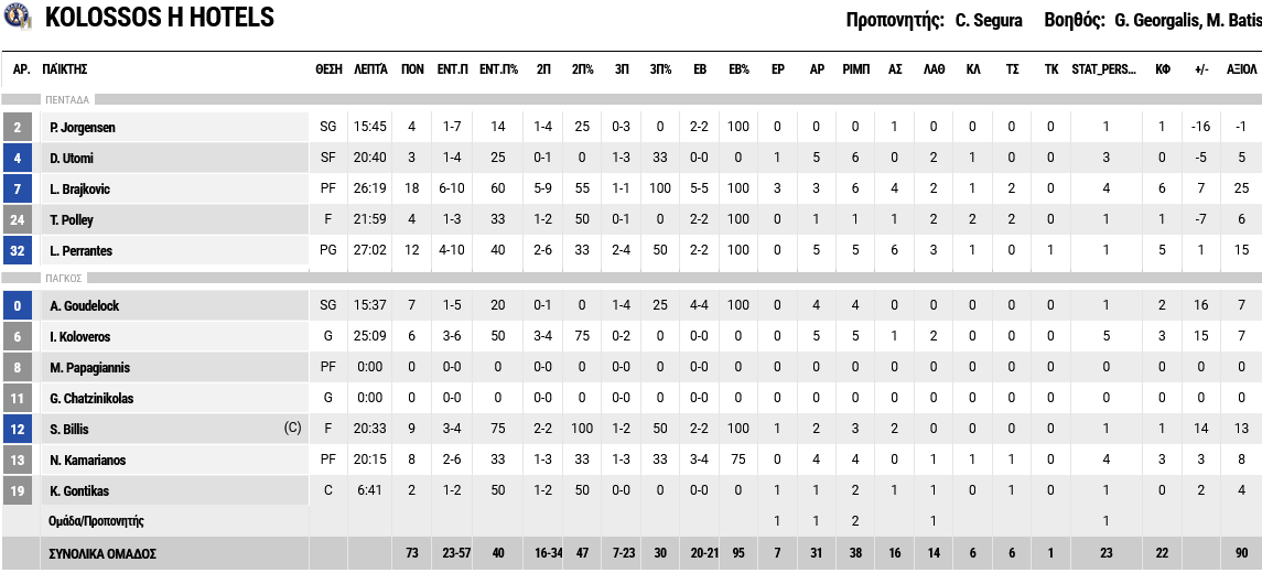 Ξεχώρισαν: 12 πόντους, πέντε ριμπάουντ και έξι ασίστ είχε ο Περάντες, ενώ για τον Κολοσσό, Γουάιτ και Σμιθ είχαν 20 και 10 πόντους αντίστοιχα.