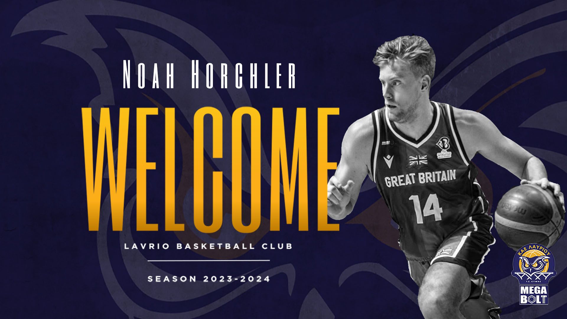 Η ΚΑΕ Λαύριο Megabolt ανακοινώνει τη συμφωνία της με τον αθλητή Noah Horchler για το υπόλοιπο της αγωνιστικής περιόδου 2023-2024.