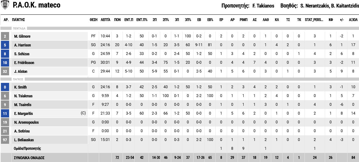 Ο ΠΑΟΚ είδε την Καρδίτσα να επιστρέφει από το -22 του 22' (56-34), να φτάνει το ματς στον πόντο (70-69) και να έχει την ευκαιρία να στείλει το ματς στην παράταση, όμως το τρίποντο του Σάιμπερτ στο φινάλε βρήκε… σίδερο και τον δικέφαλο να φτάνει στην νίκη με 72-69. Στο 6-5 ανέβηκε η ομάδα της Θεσσαλονίκης, στο 1-10 έπεσαν οι ουραγοί της βαθμολογίας.