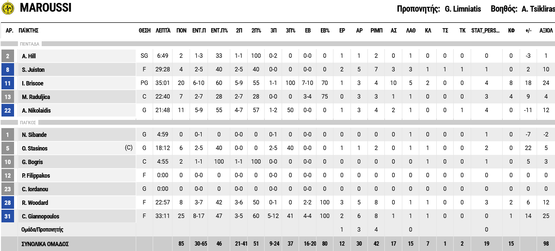 Η μεγαλύτερη διαφορά: +22 για το Μαρούσι (50-28) στο 22’