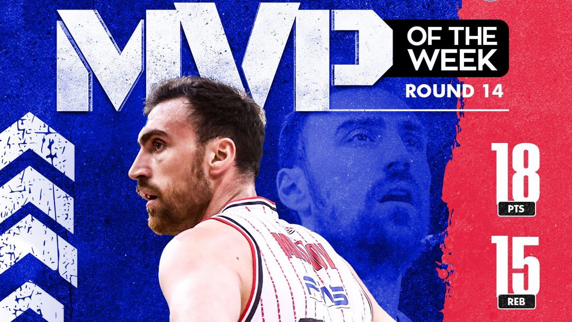 Ο Νίκολα Μιλουτίνοβ έπιασε τρομερή απόδοση κόντρα στον Κολοσσό Ρόδου και οι 31 μονάδες που συγκέντρωσε στο σύστημα αξιολόγησης τον αναδεικνύουν σε MVP της 14ης αγωνιστικής, πράγμα που συμβαίνει για δεύτερη φορά στην εφερινή Basket League.