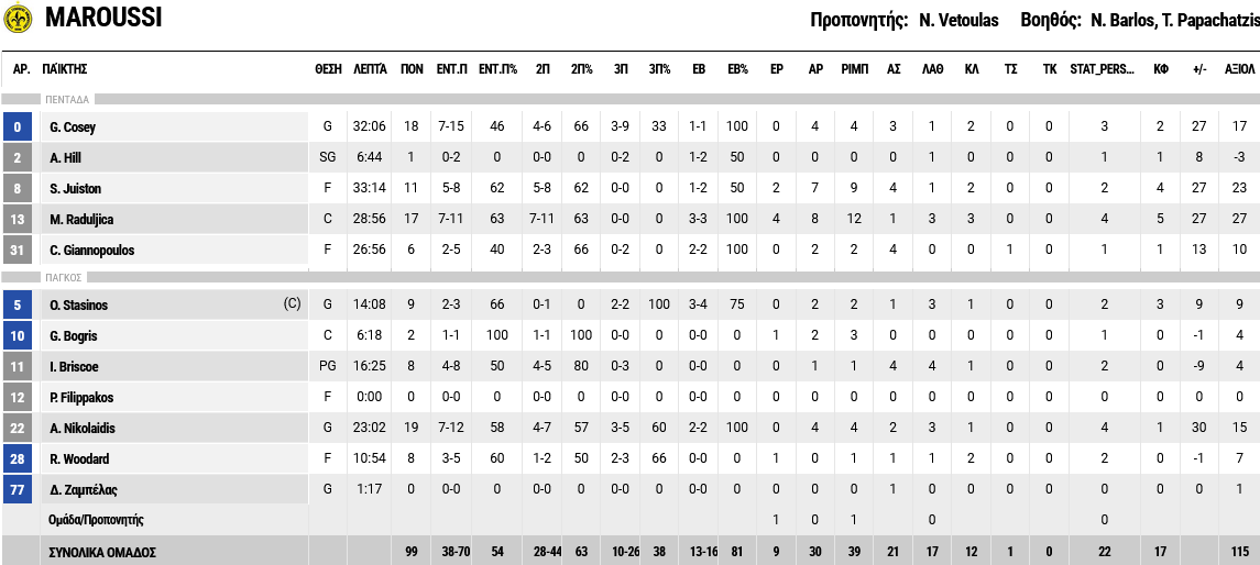 Η μεγαλύτερη διαφορά: +28 για το Μαρούσι (99-71) στο 39’