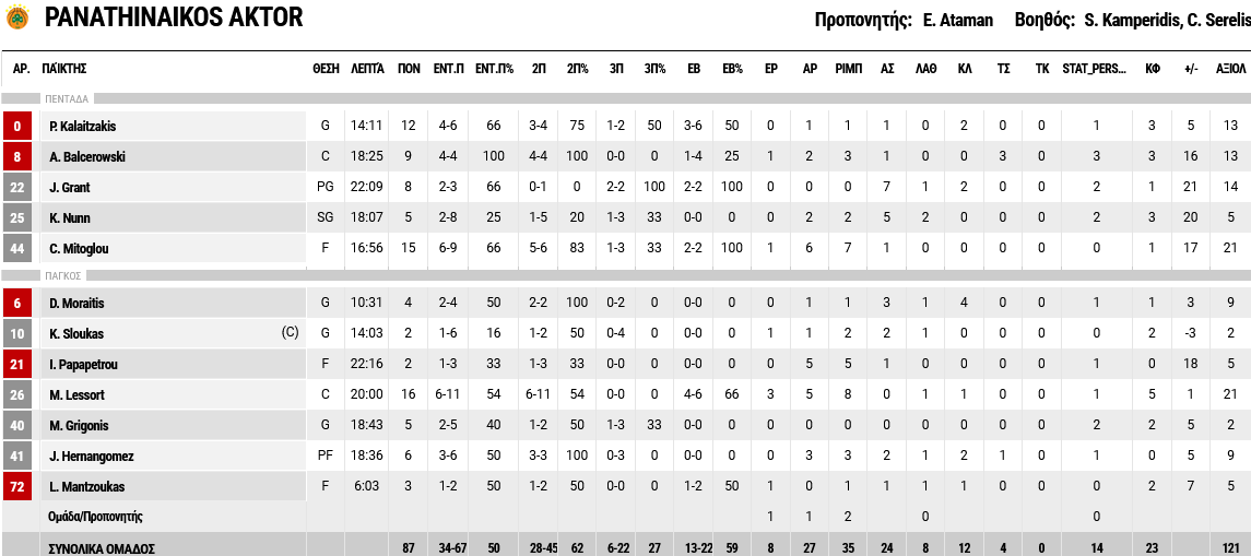 Η μεγαλύτερη διαφορά: +23 για τον Παναθηναϊκό (64-87) στο 40’