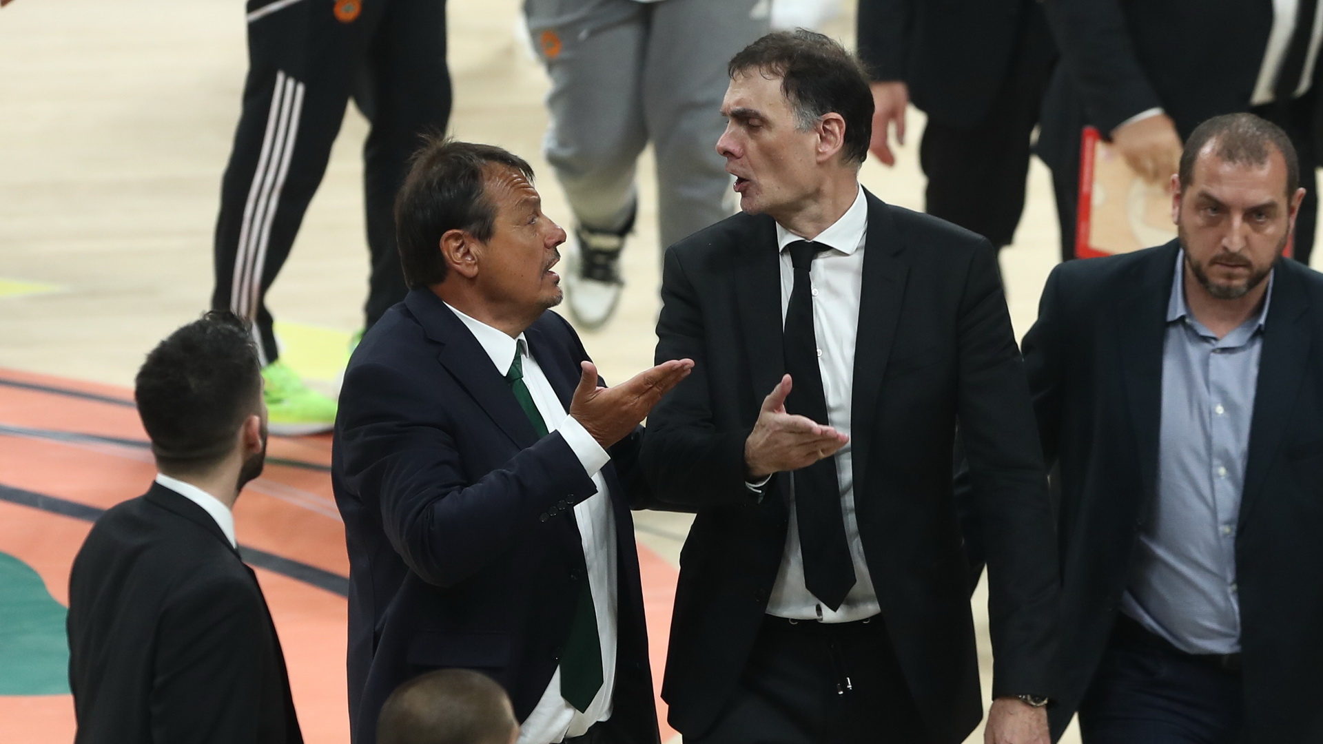Συγκεκριμένα, ο φακός έπιασε τους δύο προπονητές να έχουν έντονο διάλογο κατά την είσοδο τους στην φυσούνα που οδηγεί στα αποδυτήρια του ΟΑΚΑ.