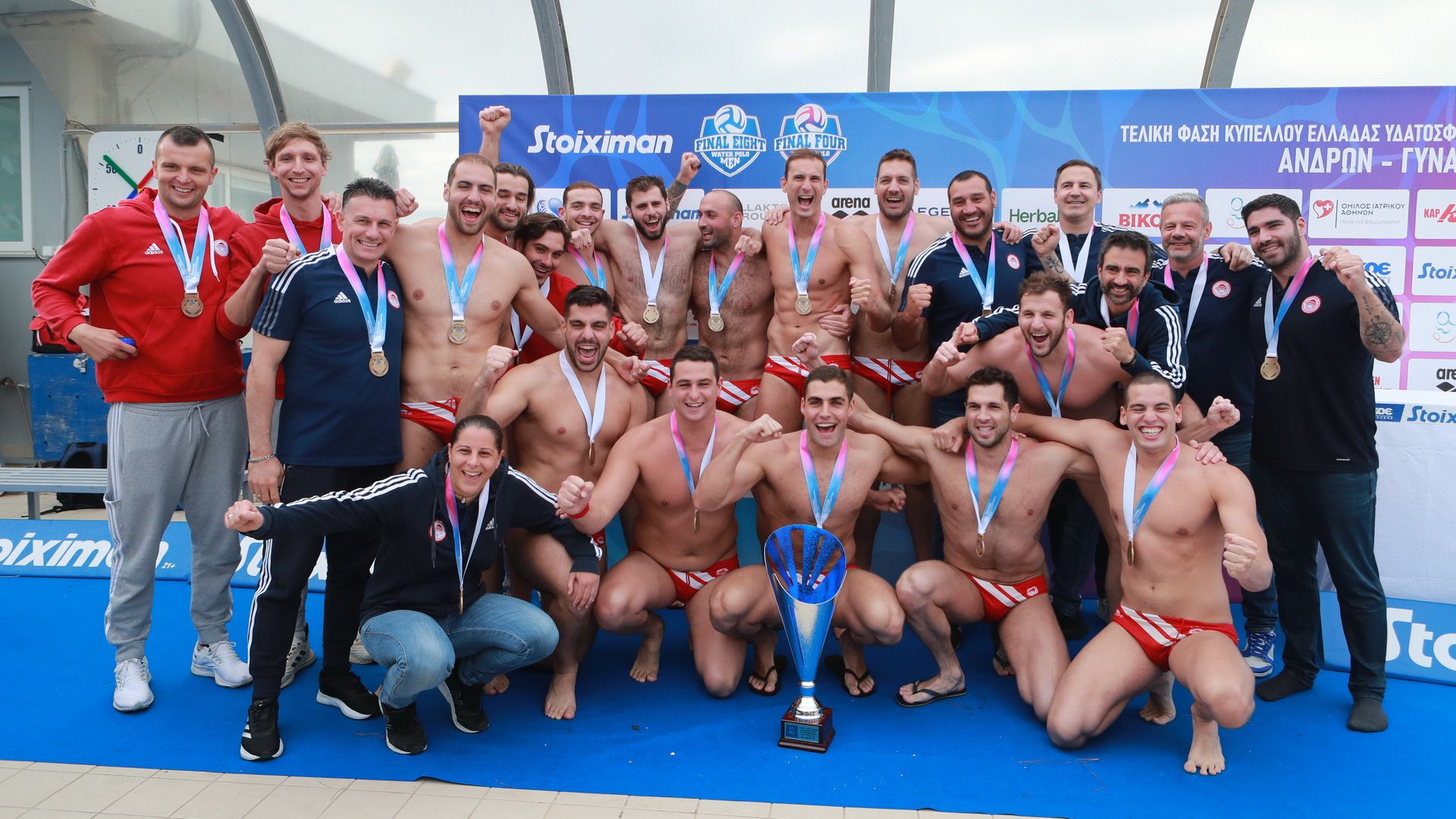 Η ομάδα πόλο ανδρών του Ολυμπιακού πανηγυρίζει την κατάκτηση του Κυπέλλου Ελλάδας, του 25ου στην ιστορία του και η ΚΑΕ Ολυμπιακός, με ανάρτηση της, συγχαίρει το «ερυθρόλευκο» τμήμα για την επιτυχία του.