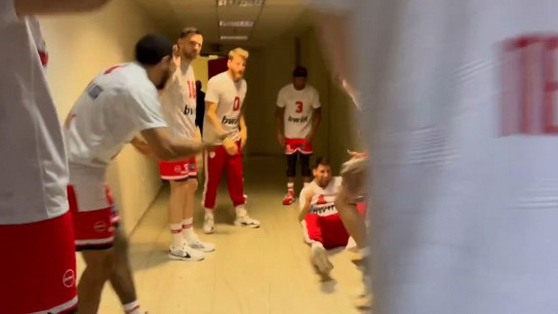 Στο καθιερωμένο τελετουργικό του Ολυμπιακού παρουσίαστηκε ένα blooper με τον Μιχάλη Λούντζη να τρέχει να προλάβει τους υπόλοιπους συμπαίκτες , ο Γιώργος Τανούλης του έβαλε καταλάθος μια τρικλοποδιά με τον πρώτο να τρώει μια μεγαλοπρεπές τούμπα.