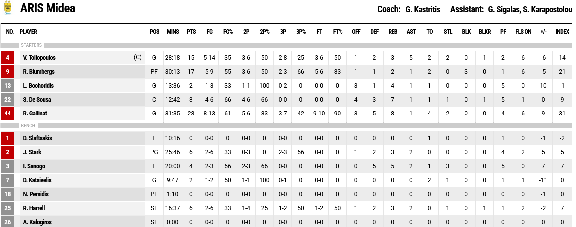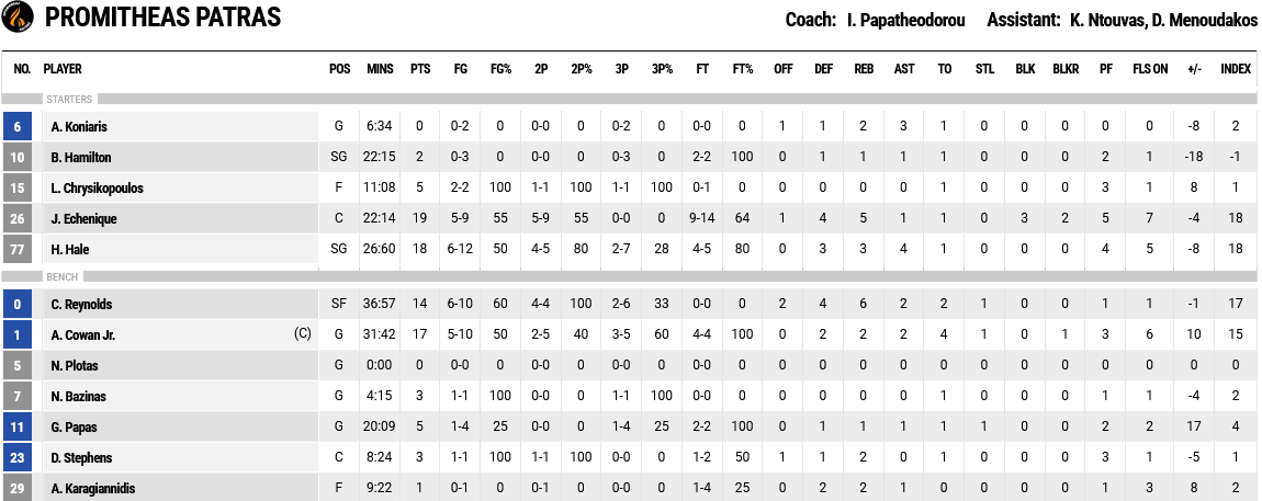 Ξεχώρησαν: Από πλευρά Άρη ο Τολιόπουλος με 15 πόντους και το απίθανο τρίποντο που έβαλε και ακολούθησε ο Μπλούμπεργκ με 17. Από πλευρά Προμηθέα ο Ετσενίκε είχε 19 πόντους και ακολούθησε, ο Χέιλ με 18 πόντους και ο Κάουαν με 17