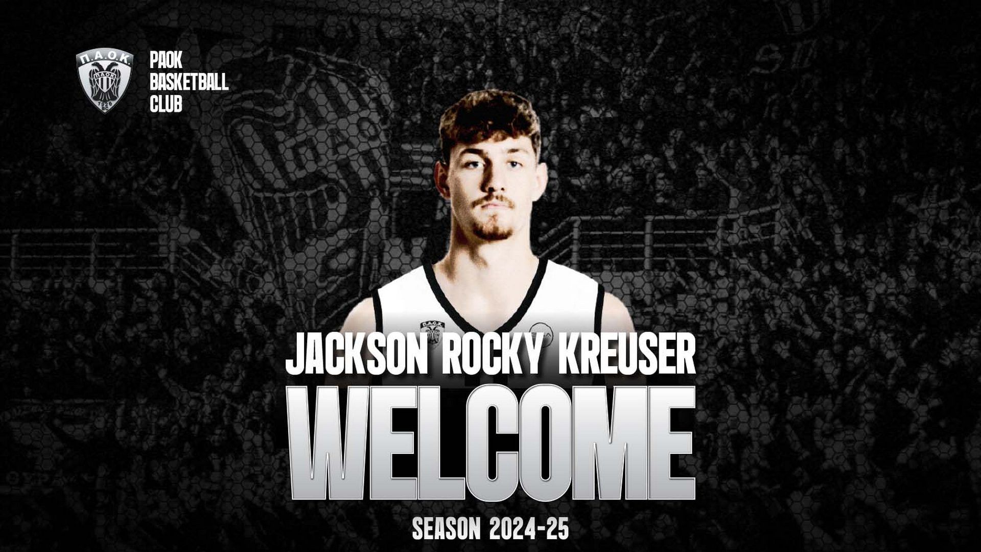 Η ΚΑΕ ΠΑΟΚ mateco ανακοινώνει την συμφωνία με τον Αμερικανό καλαθοσφαιριστή Jackson “Rocky” Kreuser, ο οποίος θα αγωνιστεί με την ομάδα μας τη σεζόν 2024-25.