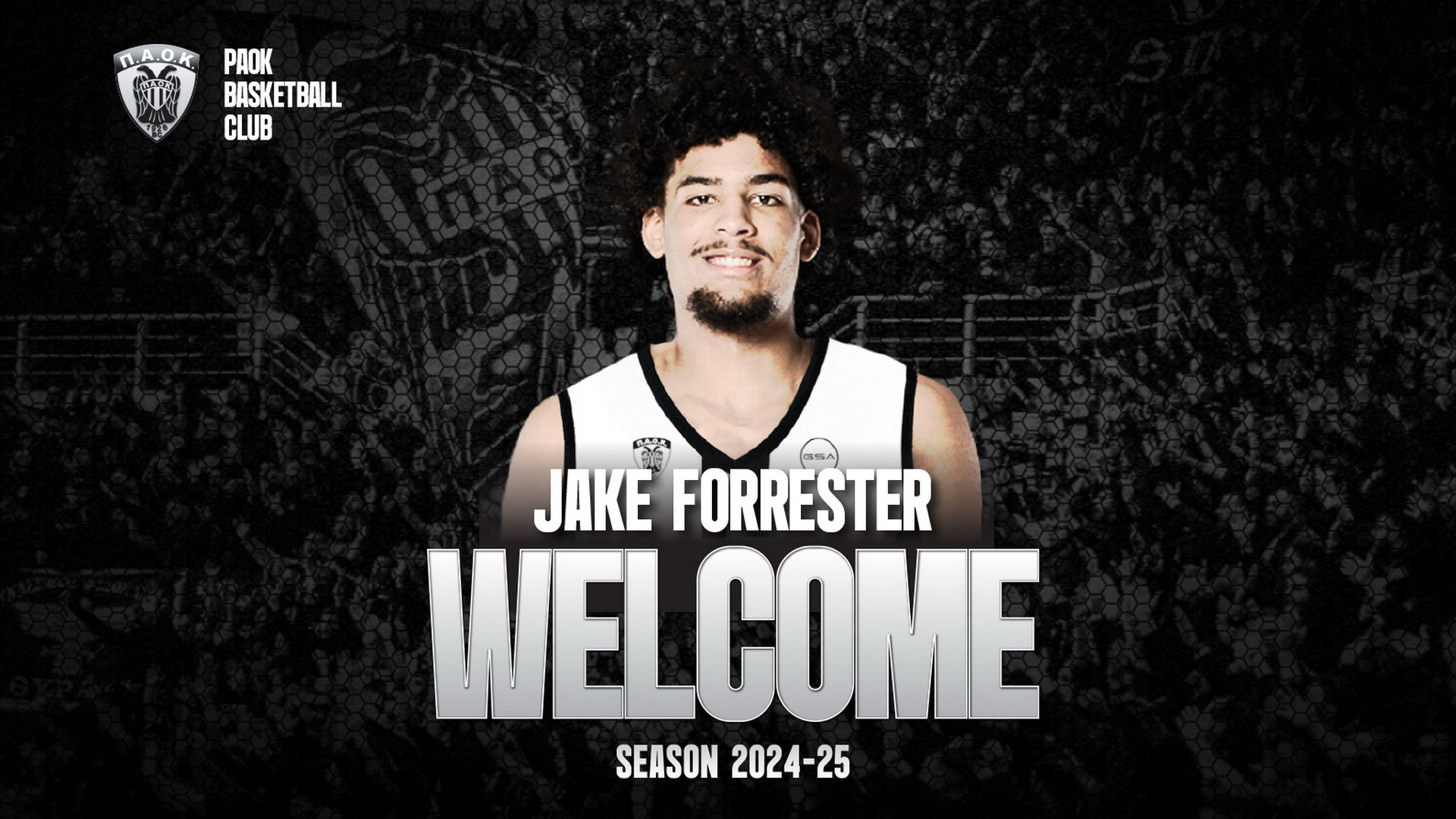 Η ΚΑΕ ΠΑΟΚ mateco ανακοινώνει την συμφωνία με τον Αμερικανό καλαθοσφαιριστή Jake Forrester, ο οποίος θα αγωνιστεί στην ομάδα μας την αγωνιστική περίοδο 2024-25. Καλωσορίζουμε τον Jake στη μεγάλη οικογένεια του ΠΑΟΚ.