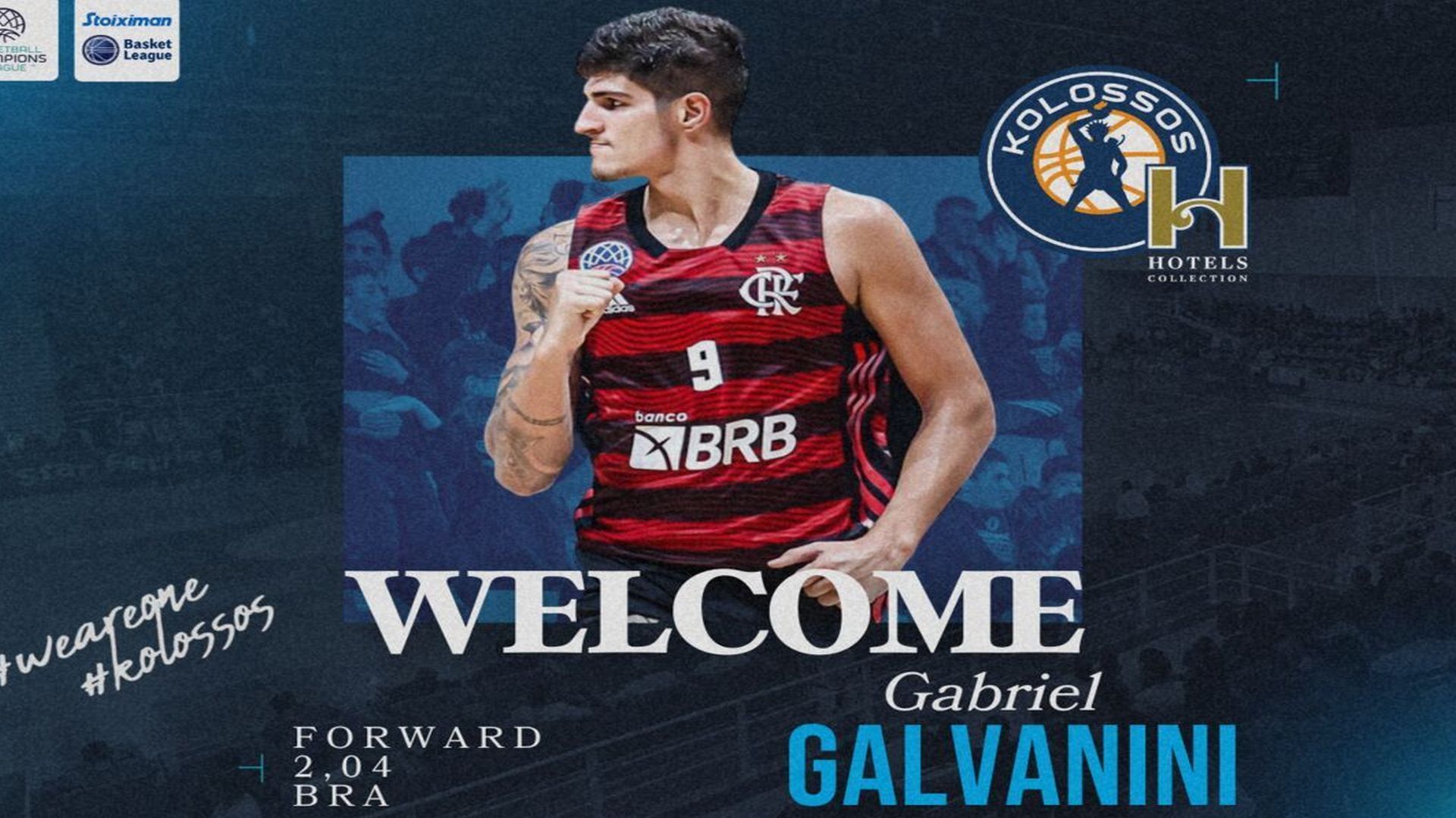 Η ΚΑΕ Κολοσσός H Hotels Collection ανακοινώνει τη συμφωνία της με τον Γκαμπριέλ Γκαλβανίνι.