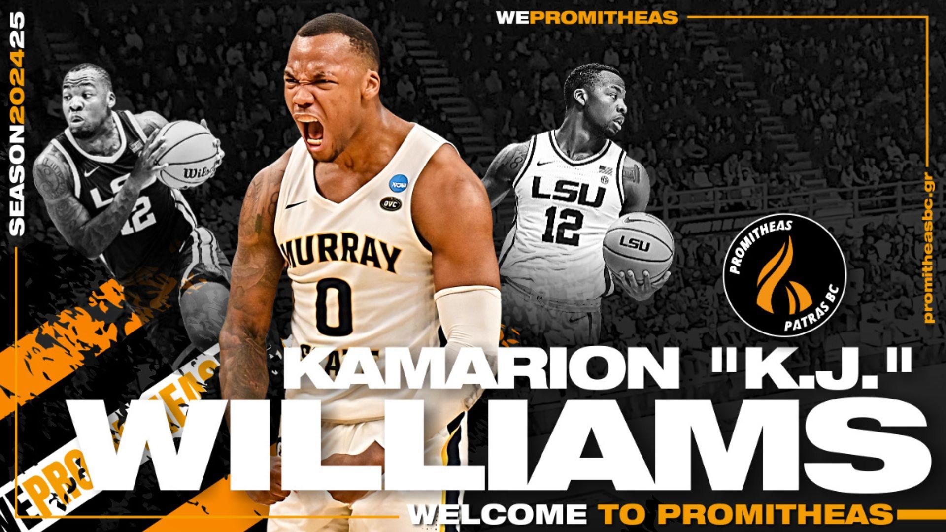 Υποδεχόμαστε τον KJ Williams στη μπασκετική μας οικογένεια και του ευχόμαστε καλή σεζόν, με υγεία και πολλές επιτυχίες με τη φανέλα του Προμηθέα.
