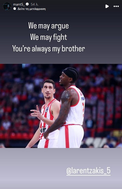Ο ψηλός των «ερυθρόλευκων», με δική του ανάρτηση στα social media, χαρακτήρισε αδερφό του τον «Mr Larry» του Ολυμπιακού.