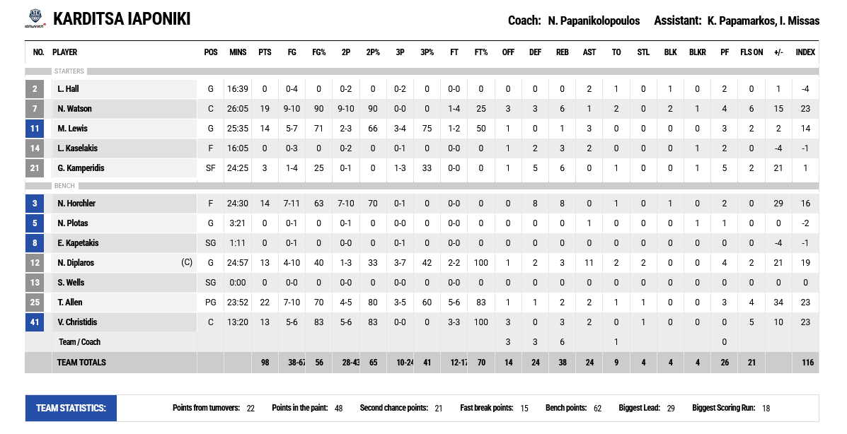 Η Καρδίτσα ήταν ανώτερη από τον Κολοσσό, με τους Άλλεν και Γουότσον να βρίσκονται σε πολύ καλή βραδιά, επικράτησε εύκολα με 98-73, παίρνοντας την πρώτη της νίκη μπροστά στο κοινό της, στο φετινό πρωτάθλημα της GBL.